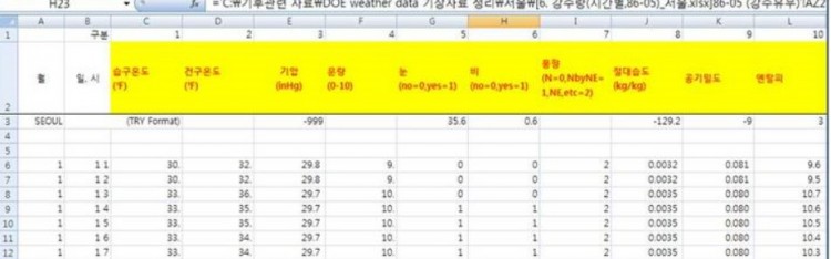 저희가 현재 갖고 있는 기상청 text data를 epw데이터를 어떻게 산출해 내는지 난관에 이렇게 질문드립니다.