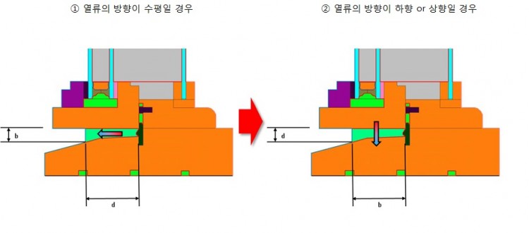 아니면 열류의 방향(d)와 열류의 폭(b)로 나뉘는것인지 잘 모르겠습니다.