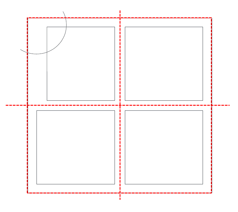 "치수를 이용해서"라는 말씀을 잘 이해하지 못했습니다. 그냥 종단부는 바의 끝까지.. 창과 창이 만나는 중간바는 바의 중심선이므로, 별도의 치수가 필요하지 않아서요..