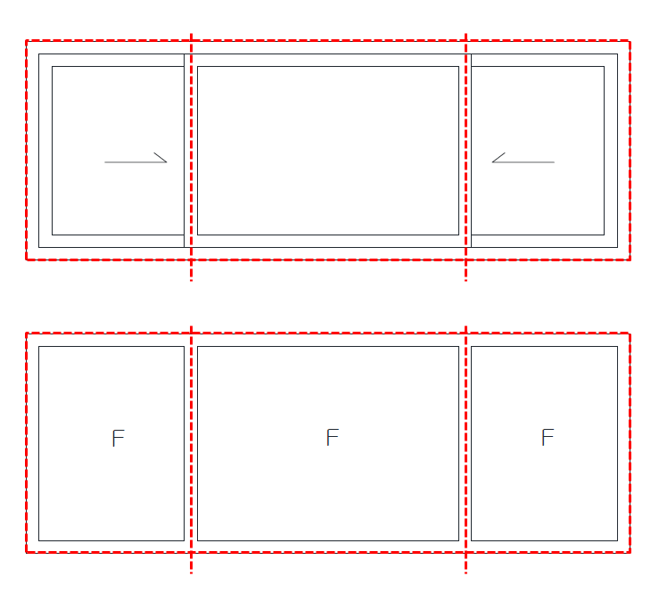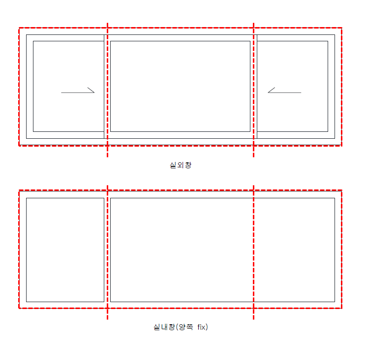 그냥 종단부는 바의 끝까지.. 창과 창이 만나는 중간바는 바의 중심선이므로, 별도의 치수가 필요하지 않아서요..