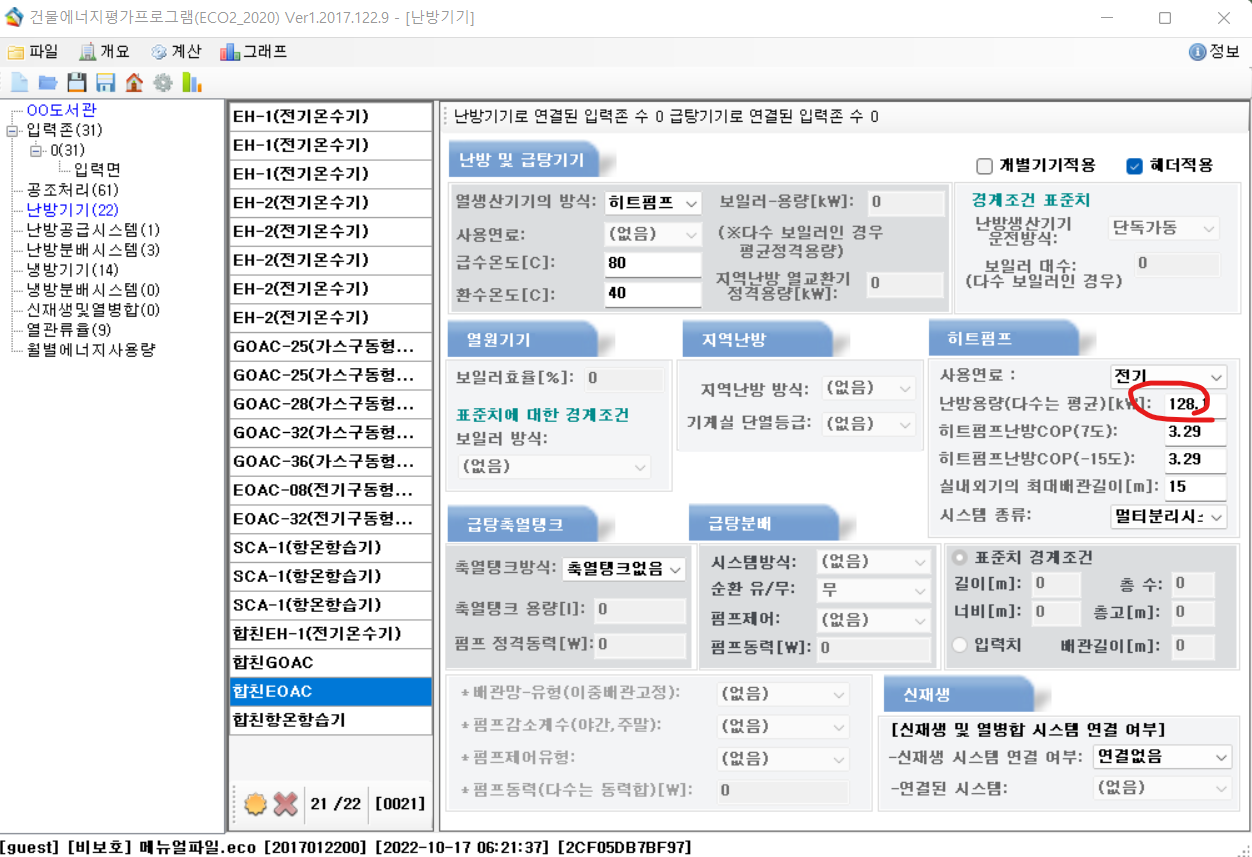 열공급시스템의 숫자를 입력했다면, 난방용량은 평균치로 하시면 되세요.