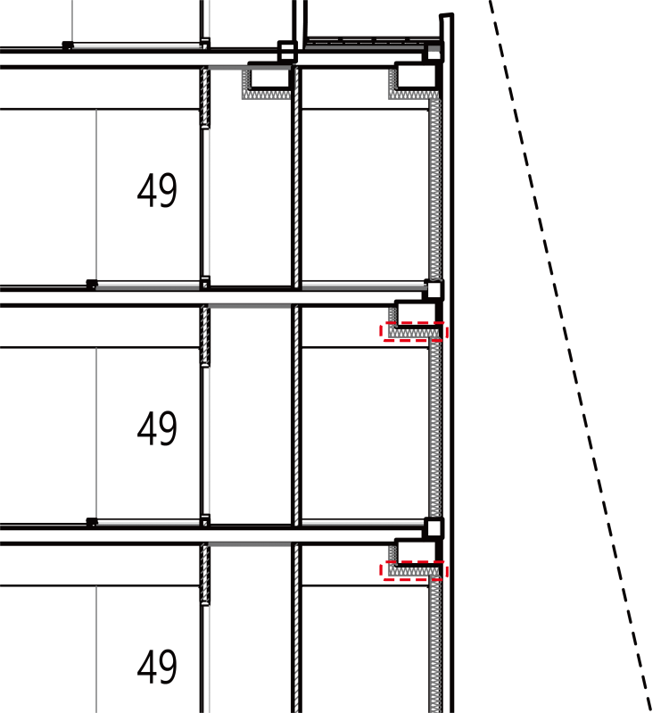 또 다른 방법은 보의 위치를 안쪽으로 옮기는 방법이 있습니다. 외부는 슬라브캔틸레버의 개념인데 구조와 긴밀한 협의가 필요한 부분입니다.