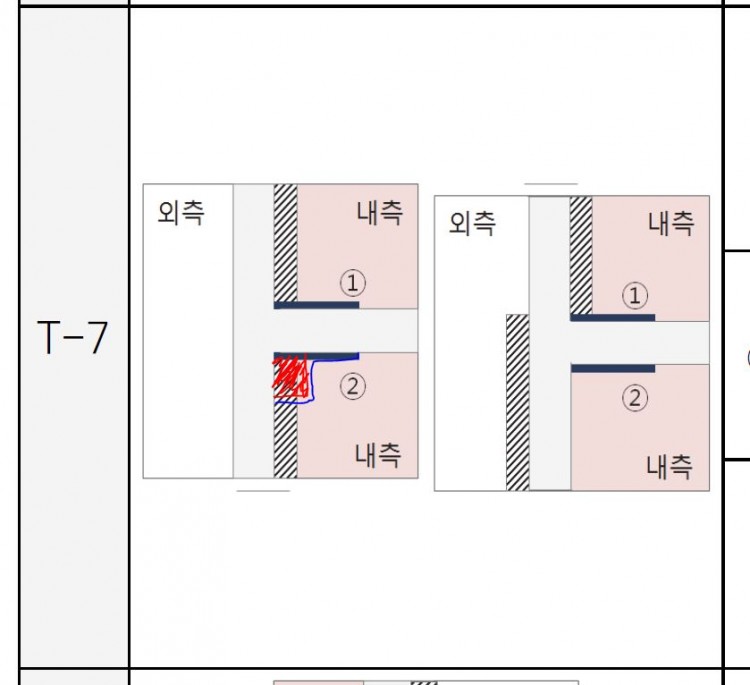 그렇게 하면 '외피 열교부위별 선형 열관류율 기준' 에서 'T-7' 사례로 적용될 수 있을까요??
