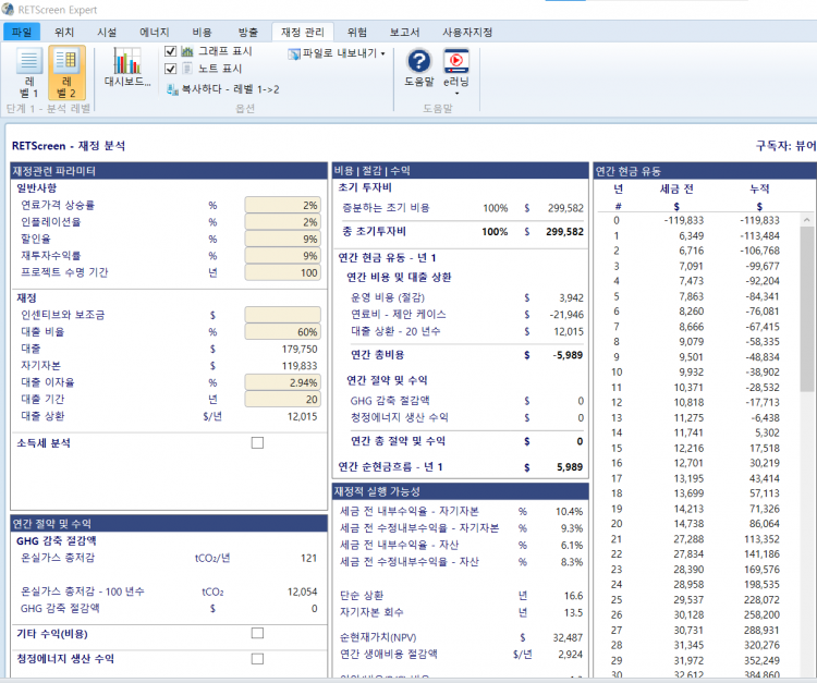RETScreen 재정관리 부분 질문드립니다.