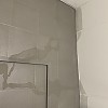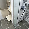 오피스텔 샤워부스 뒷편 온수관 물 참, 주변 벽 하부 곰팡이