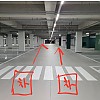 지하주차장 바닥 배수를 위해 바닥을 경사지게 만들어 차가 저절로 굴러갑니다.