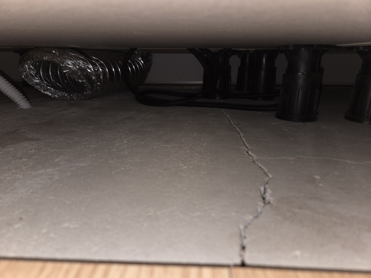 싱크대 하부의 몰탈 균열이 보이는 것은 흔히 있는 결과입니다.
