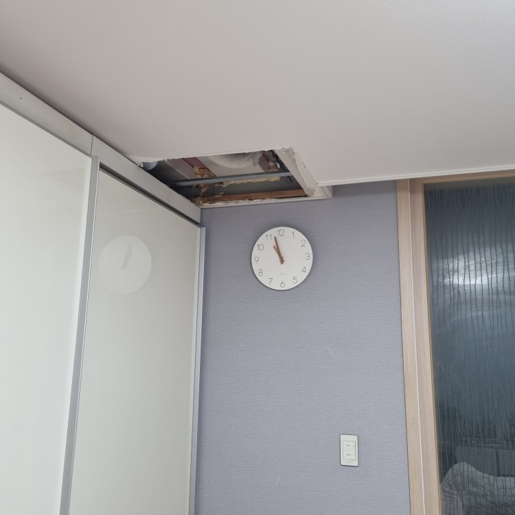 옥상에 방수가 오래 되어서 그럴 수 있으니 올여름 장마를 보고 하자고 해서 1년을 천정을 뚫어 놓고 있었습니다.
