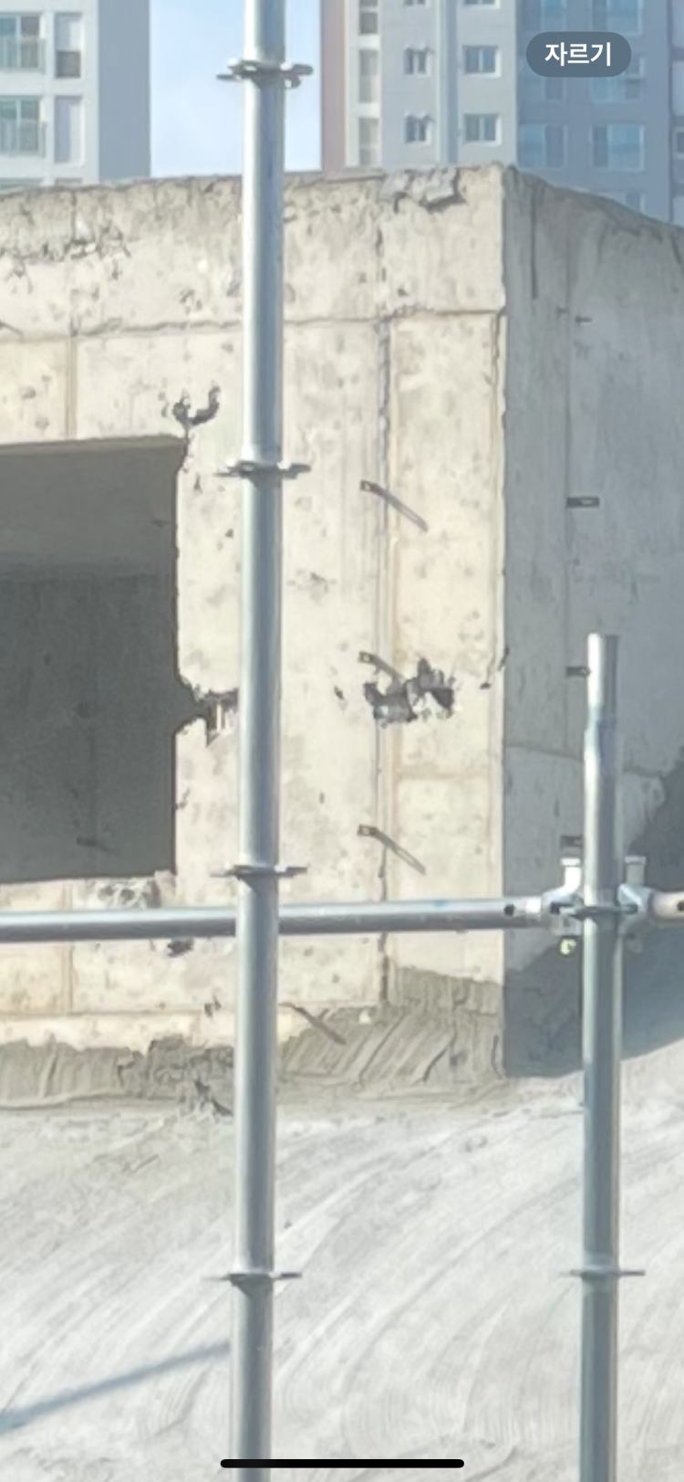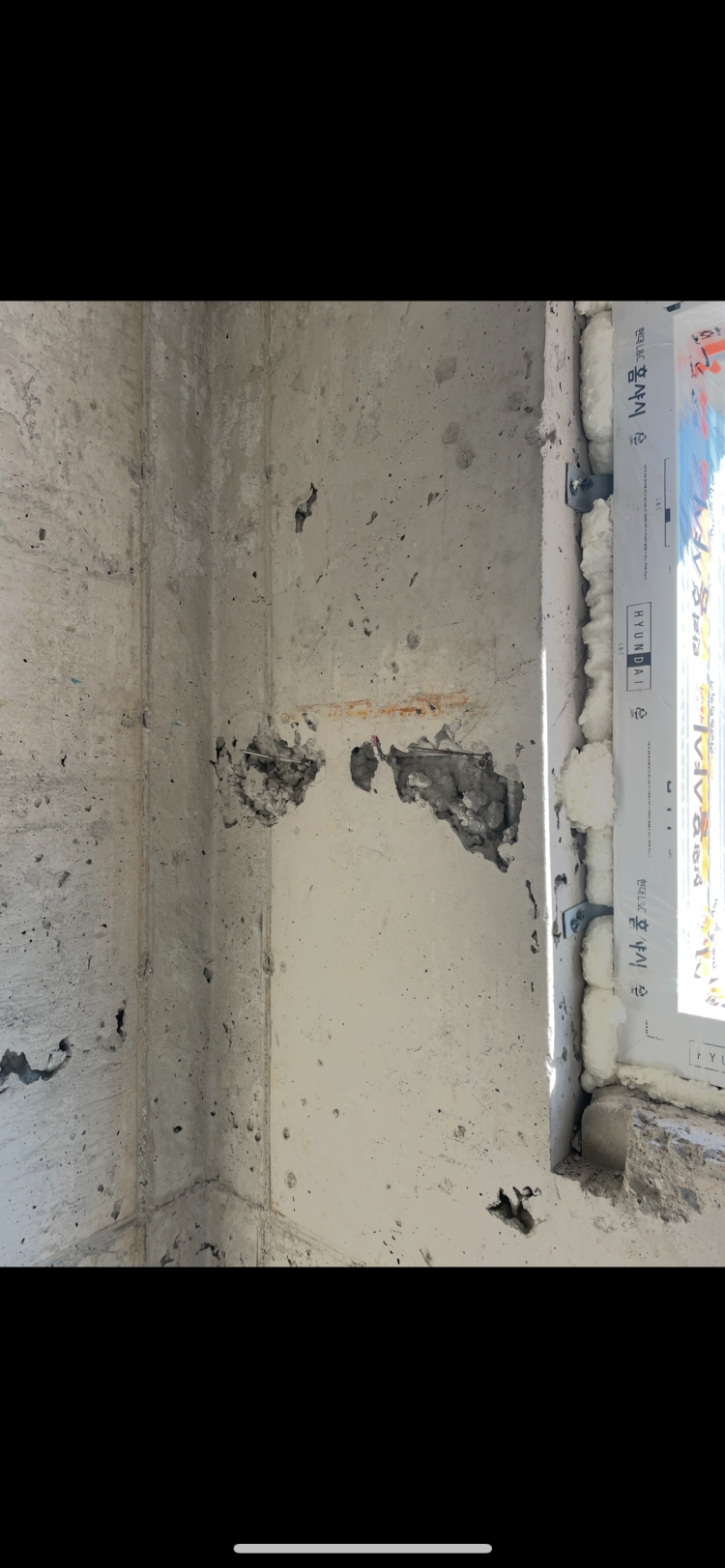 첨부한 사진에서 보이는 것처럼 철근 노출된 부분을 보수하지 않은 채 완공되었습니다.