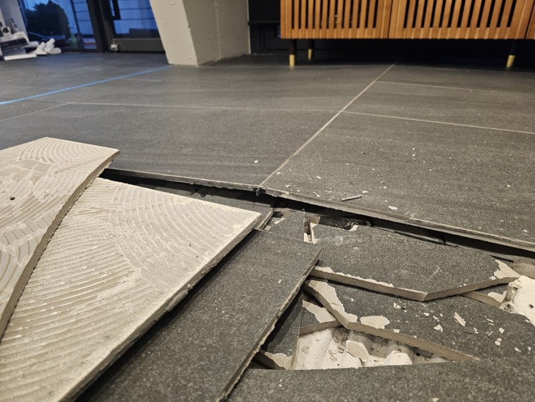 가게 1층 실내 입니다. 아침에 갑자기 쩌찍 소리가 나더니 역v자로 들떠버렸어요. 건물 완공은 21년이라 하자보수 기간은 작년으로 끝난 상황입니다. 시공사측에도 문의를 했고, 인터넷 검색을 해보니 온도차이로 인한 팽창 문제로 이렇게 터질 수 있다. 라고 하더라구요. 실내여서 그렇게 온도차이가 날것이 있나? 라고 생각이 드는데, 질문을 드리자면, 이것이 뜬게 온도차이가 맞을까요? 그리고 다시 시공을 한다면 어떻게 해야 이런일이 안생길까요? 현재 바닥난방이 아닌 시스템 냉난방기로 온풍 난방을 하고 있구요. 줄눈이 탄성 줄눈이 아니고 그냥 줄눈 비둘기 색입니다. 아침에 보통 10분정도 문을 열어 환기 시키는것이 외기가 가장 길게 들어오는 때구요. 오늘 갈라진 부분쪽이 폴딩도어와 테라스 도어쪽 입니다. 테라스는 데크시공이 되어 있습니다. 전문가님들의 고견 부탁드립니다.