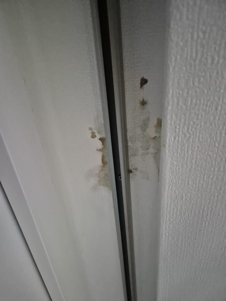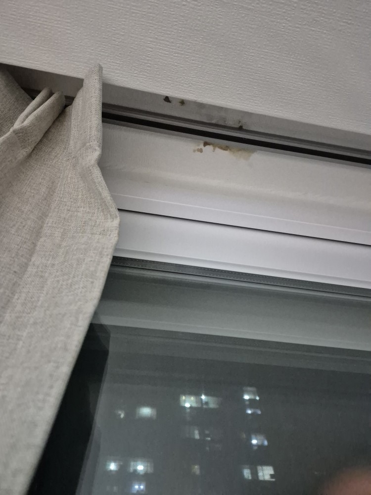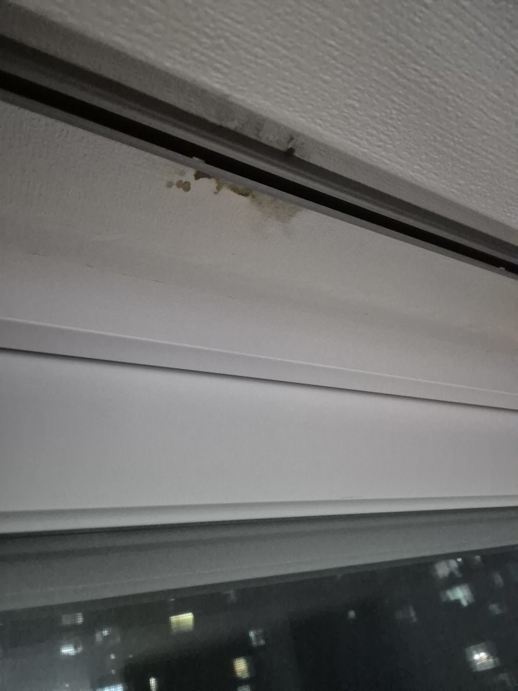 천장 샤시 앞에 물 자국과 갈색깔 자국이 생겨서