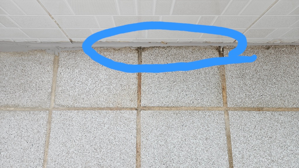 비가 많이 오면 사진 이외에도 타일 사이에서 빗물이 많이 들어오고 적게 오면 휴지에 살짝 젖는 정도입니다