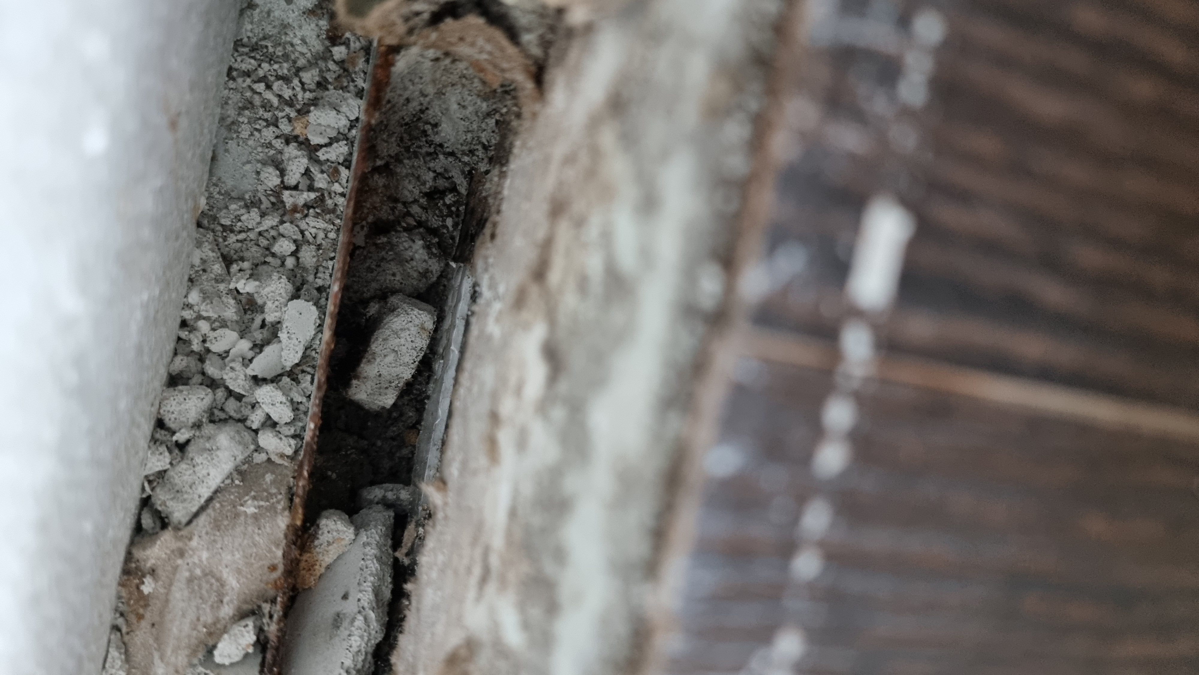 위층 걸레받이와 석고벽면을 뜯어냈는데 바닥에 물기가 보였습니다. 틈사이로 휴지를 대면 벽쪽에선 물기가 없고 바닥층 슬라이브에 물기가 나옵니다