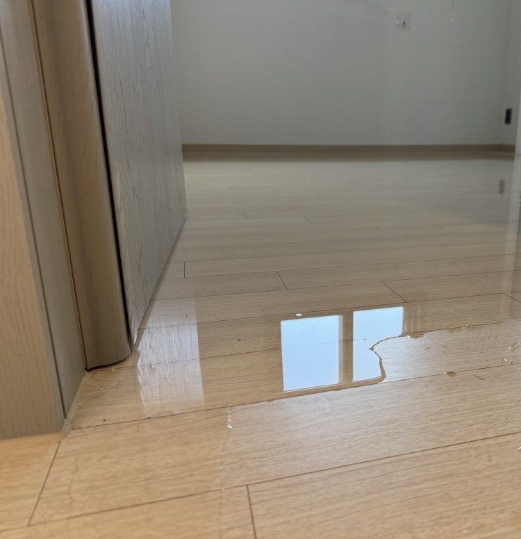 바로 발견하지 못하여 작은방 물이 넘쳐 거실 및 주방까지 물이 찼습니다.