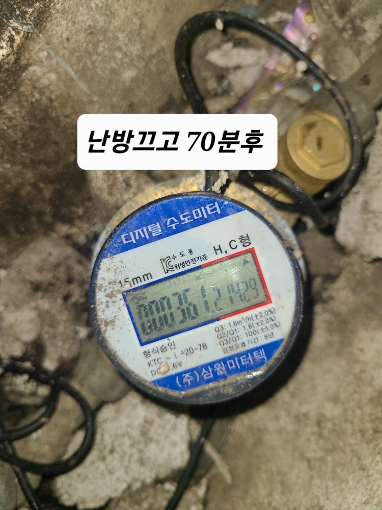 계량기가 살짝 올라가있고 보일러를 끄고 70분후 확인해도 계량기가 올라가있는데 누수일까요?