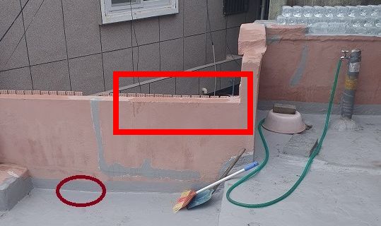여기가 지금 누수현상이 있습니다. 비올때 고이긴 했던 곳이지만 비가 일주일 동안 안왔는데도 계속 물방울이 떨어졌습니다. 여기 부분에 압 테스트전에는 물방울 떨어짐은 없었습니다.