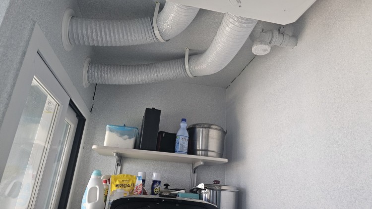 다용도실(세탁실) 실외기실 문 윗쪽과 천장에 사이가 벌어졌어요.