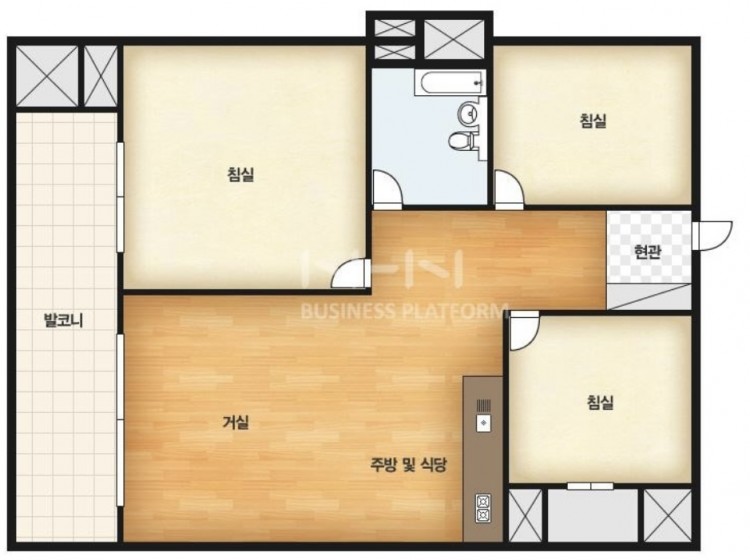 *평면도와 다르게 세면대, 양변기는 안방쪽으로 붙어있습니다.
