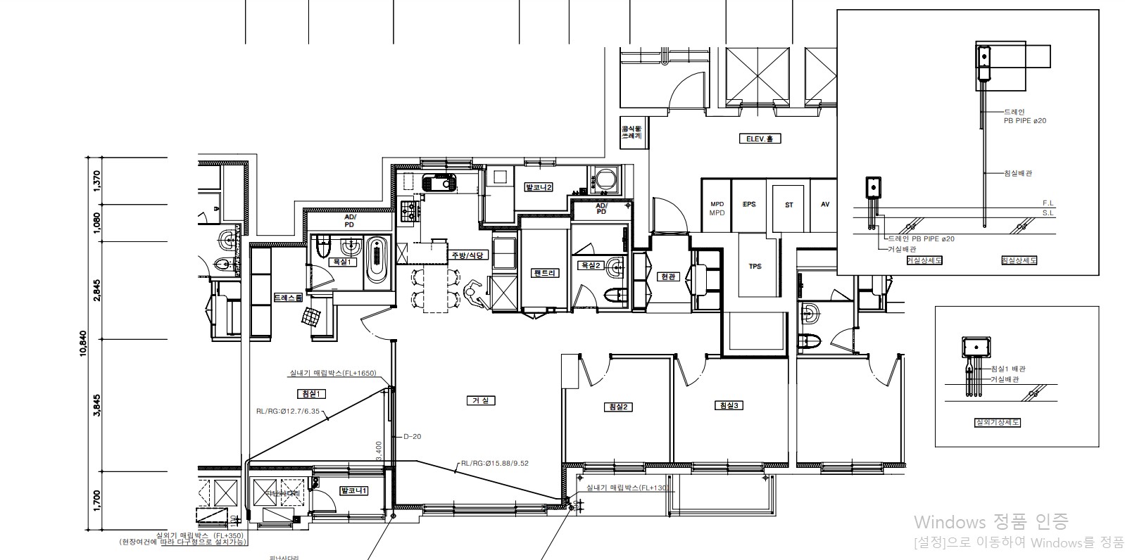 알고 보았더니 안방 가벽에 매립되어 있는 부분은 벽걸이에어컨을 연결하는것이었습니다.
