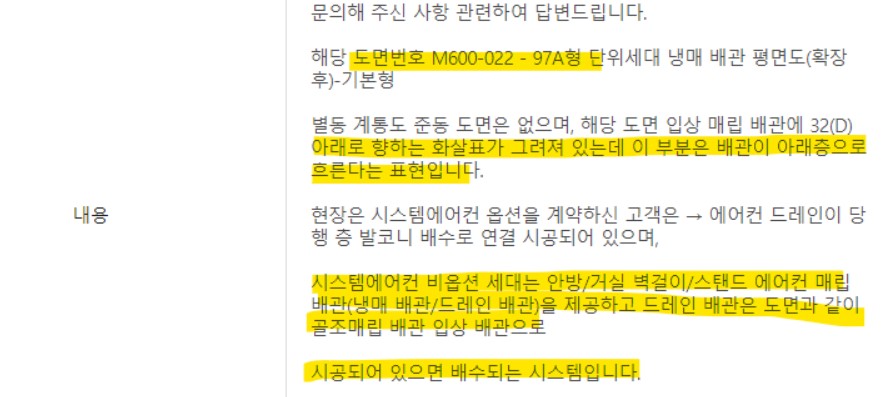 시공사에서는 도면 불일치에 대해서 이야기 하였으나 답변을 받지 못했습니다.