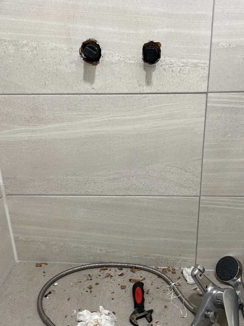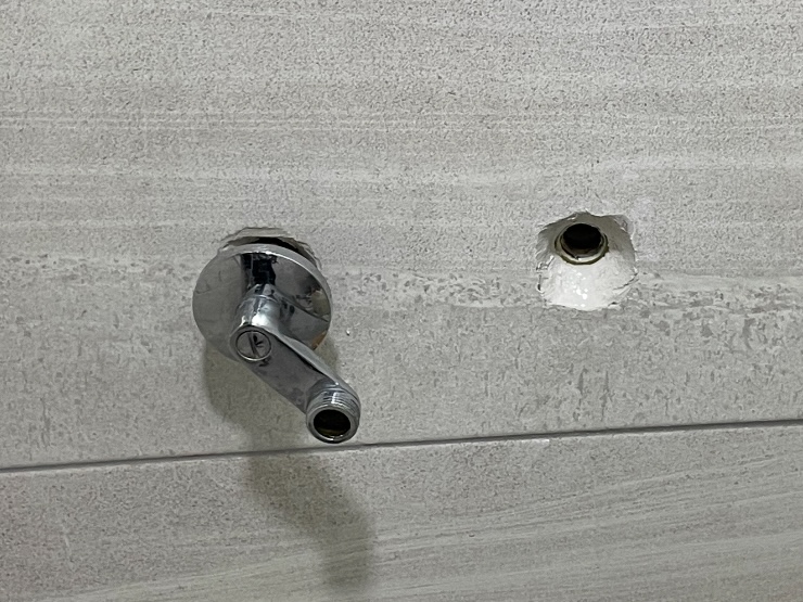 1. 벽에서 밖으로 노출된 샤워기 수도관 연결 부위가 짧아져 샤워기 수전과의 연결 부분이 충분히 감싸지지 않아 샤워기 수전과  벽에서 나온 수도관 사이 연결부위에서 조금씩 누수가 발생하고 있었고
