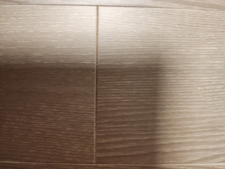간격이 일정치 않은 것은 시공오차이며, 이음매가 V자 형태로 생긴 것은 원래 그러한 자재로 보입니다.