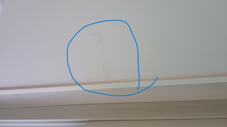 안녕하세요, 사진 처럼 천장 도배지에 오염이 생겼습니다.