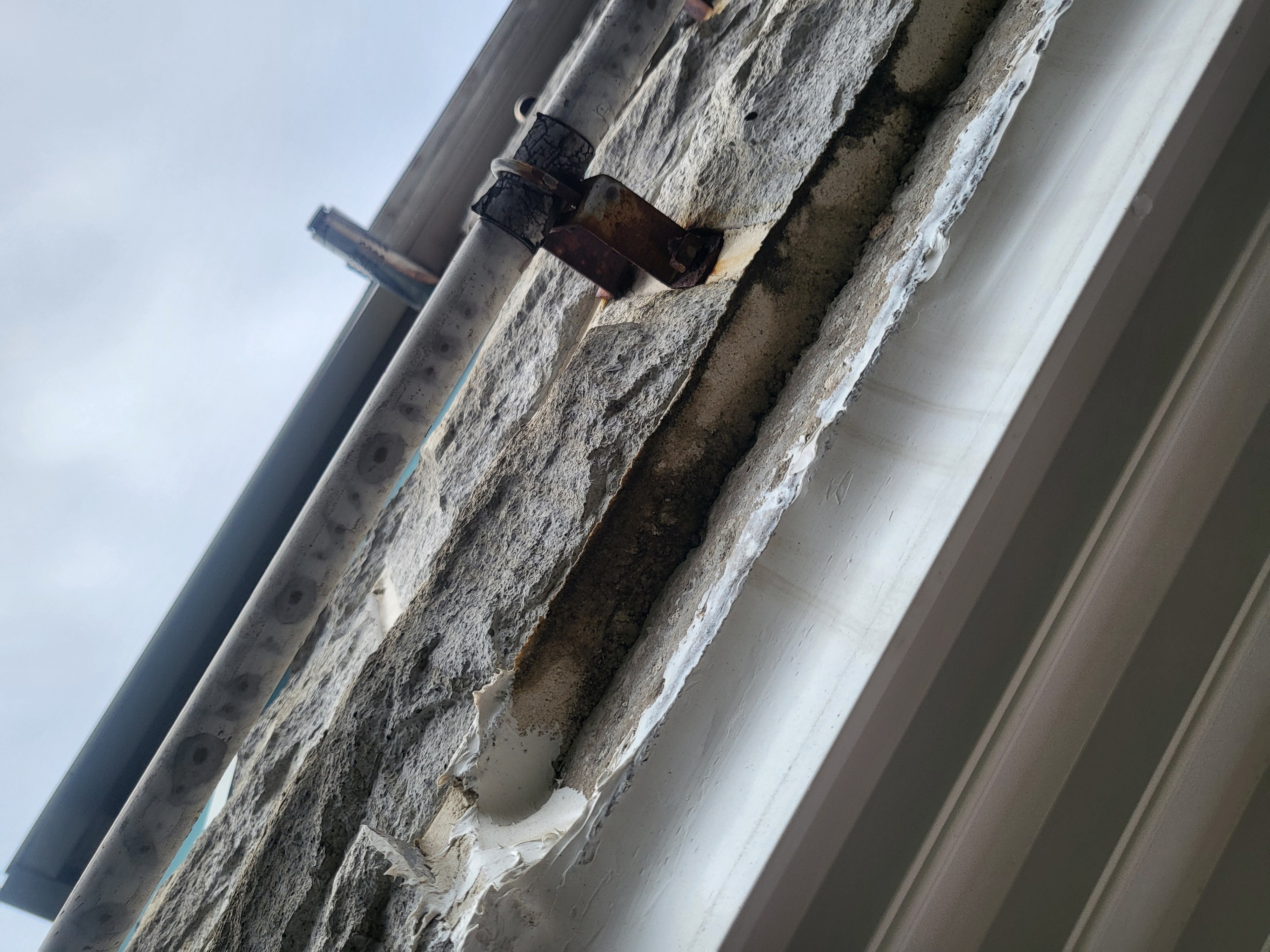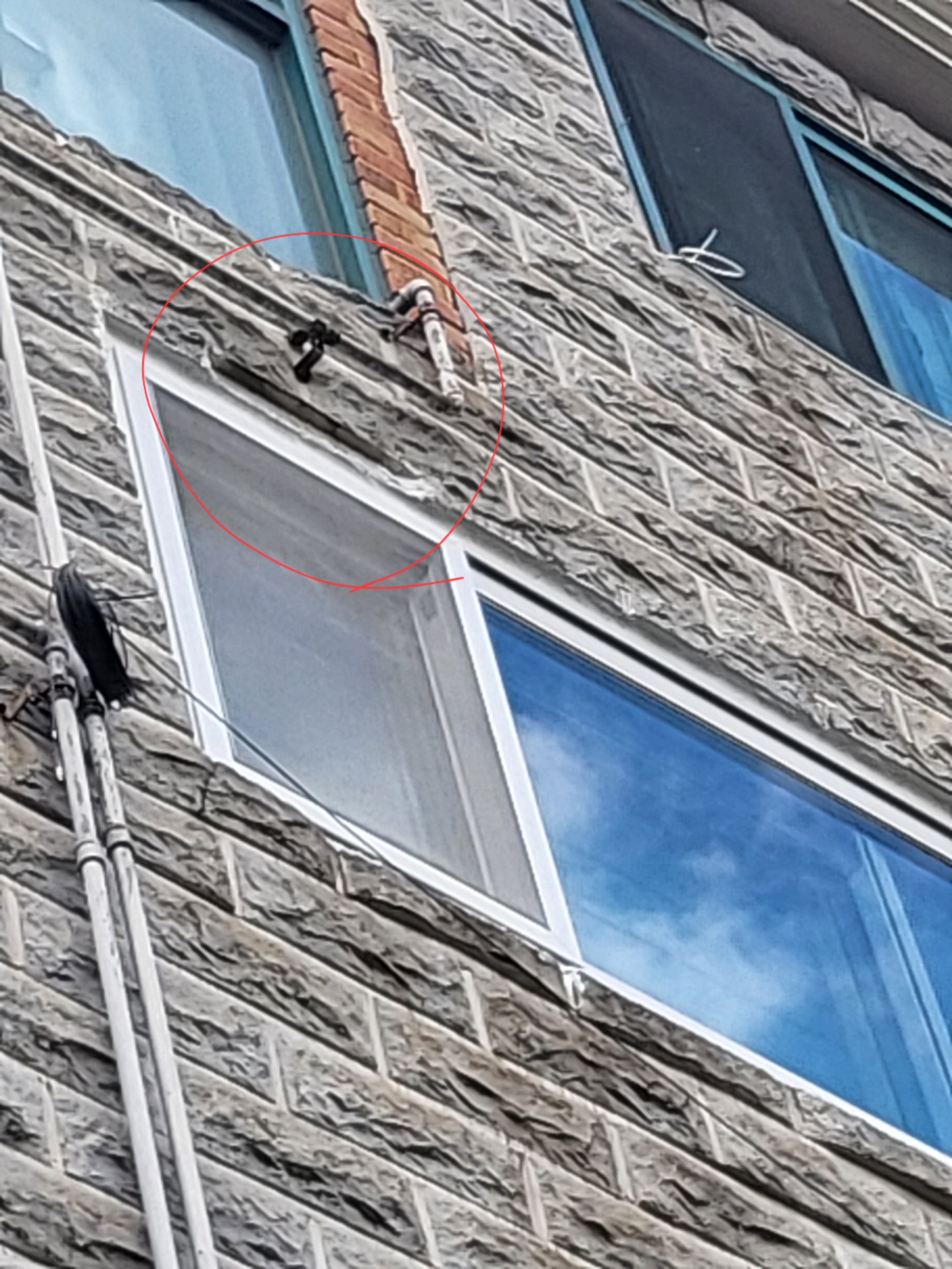 지금은 상부 창문의 외부 벽돌이 빠진 것이 원인이라기 보다는 창문 상부에 가스관을 잡기 위한 앵커로 부터 시작되어 창문 쪽으로 생긴 균열의 틈새로 물이 들어 오고 있는 것으로 예상됩니다.