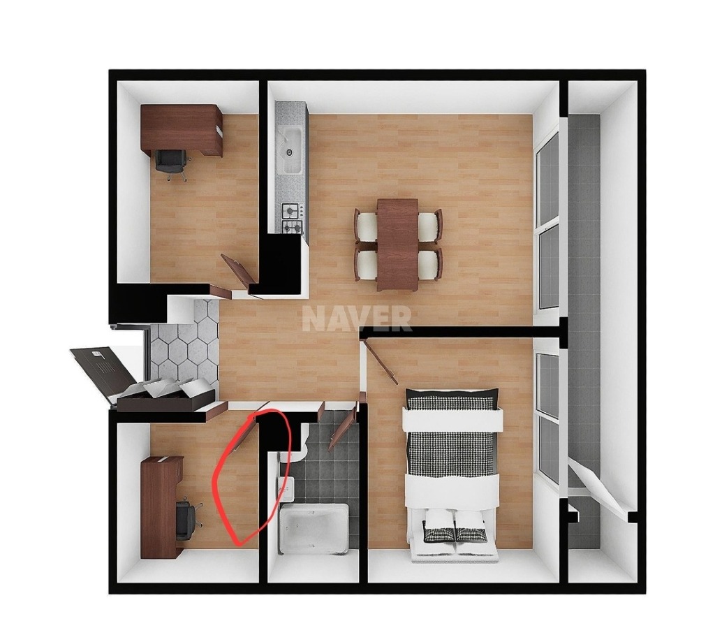 안일하게 누수라는 생각보다는  옷과 의류건조기 김치냉장고가 있는 방이라 환기를 잘 하지 않아 너무 오래 진행된 곰팡이라 생각하고 락스로 닦고 선풍기로 말렸는데 방 문쪽 중간부터 아랫쪽 으로는 자국처럼 없어지지가 않았어요.