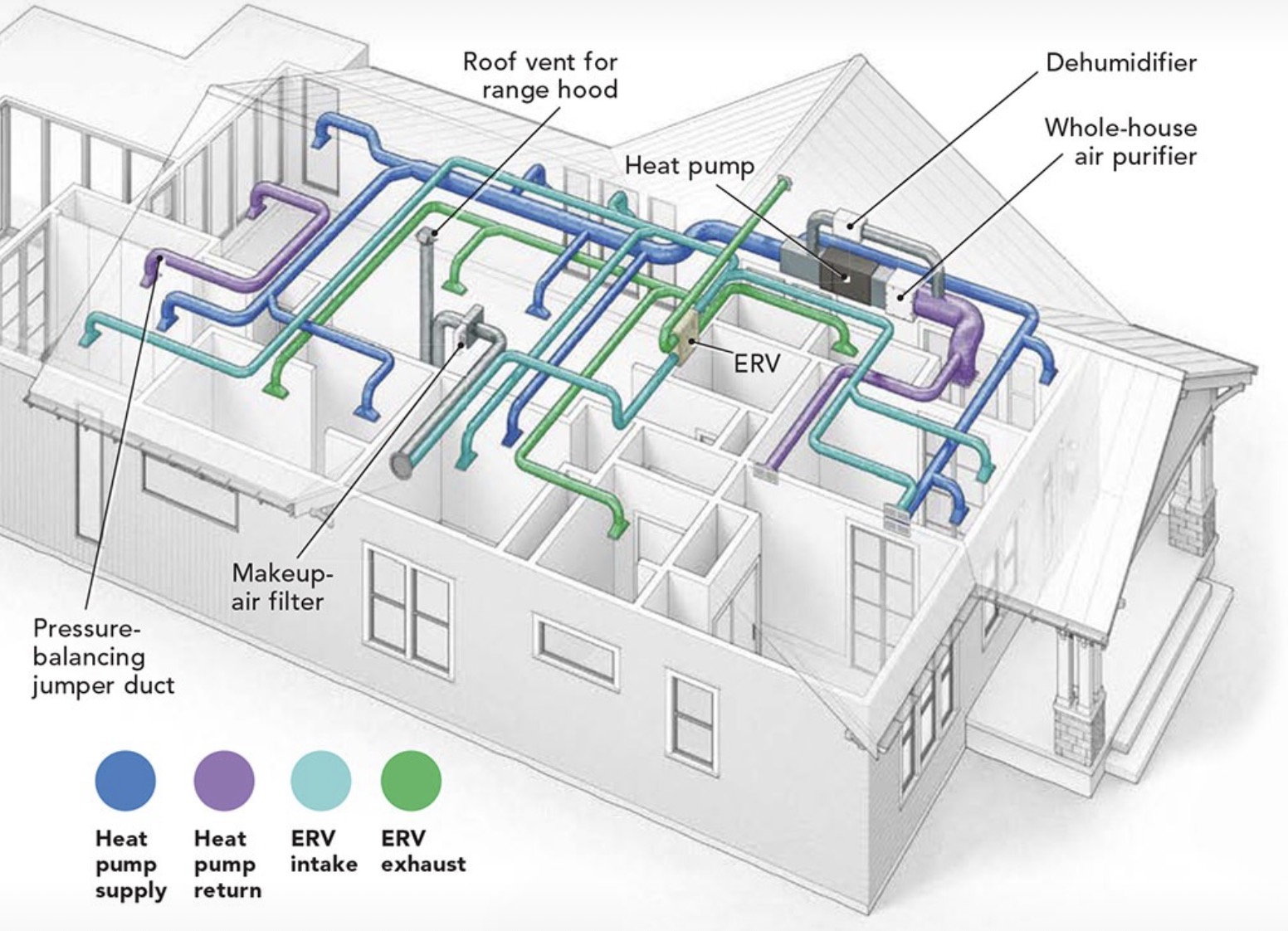 그런데 기밀이 좋은 건물에서 전열교환기가 있더라도, 급기와 배기가 비슷하게 세팅된 상태에서 주방 배기팬이나 화장실 배기팬을 작동할 경우 풍압이 걸려서 제대로 작동하지 않는다는 글을 본 적이 있습니다. 그래서 미국에서는 이 경우를 대비해서 급기가 부족한 만큼 외부에서 공기를 끌어올 수 있게 별도의 구멍(Roof vent for range hood?)을 만들어둔다고 하던데요.
