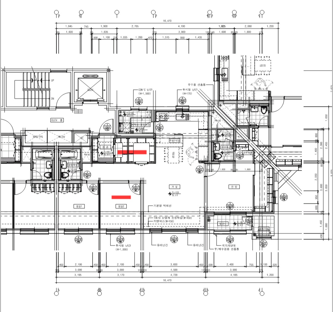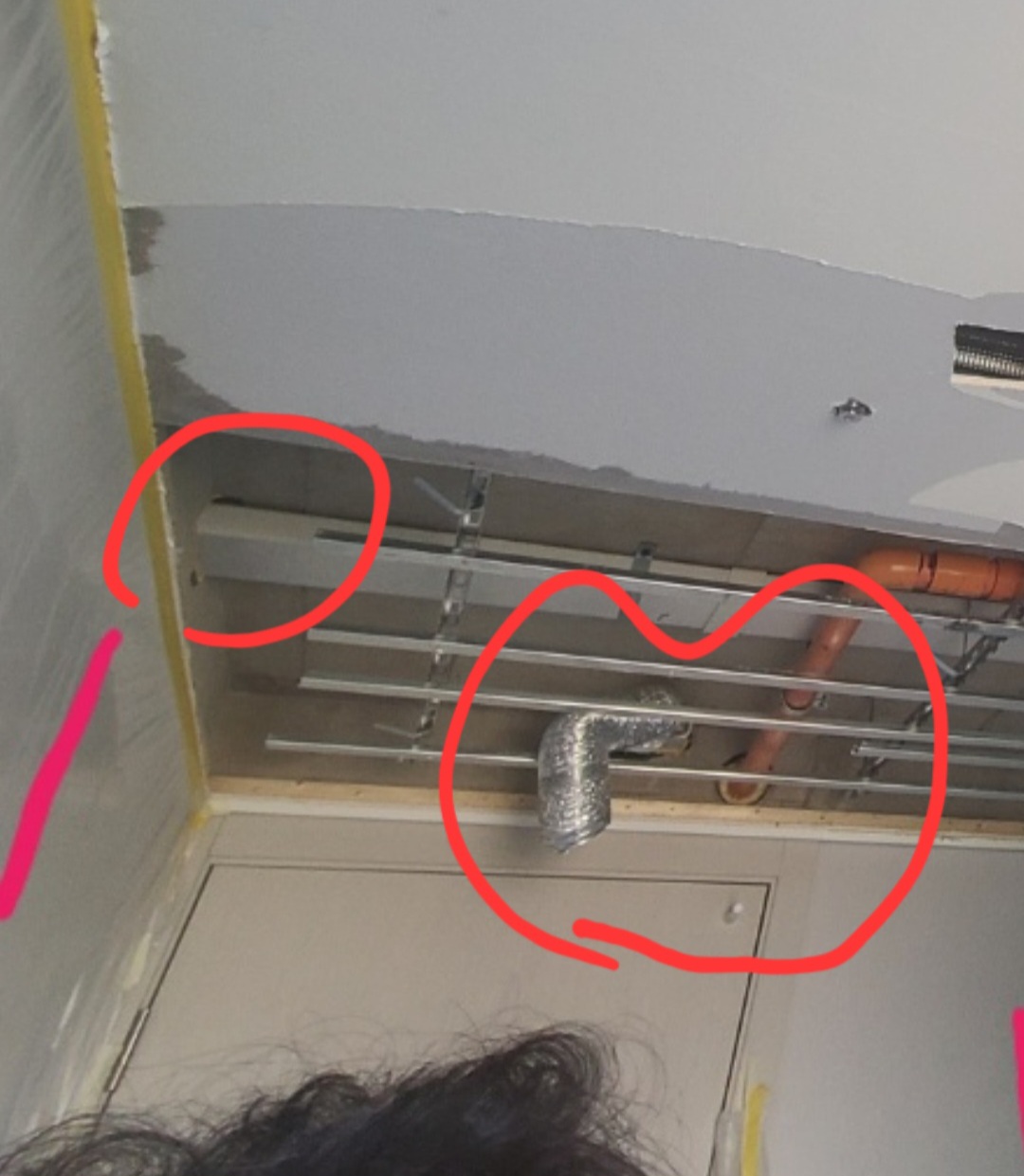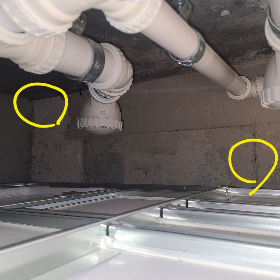 빨간색 체크 벽면 위쪽으로 배관들이 있던데 그 부위는 폼으로 처리가 안되잇는것도 냄새와 관련이 있는지도 궁금합니다
