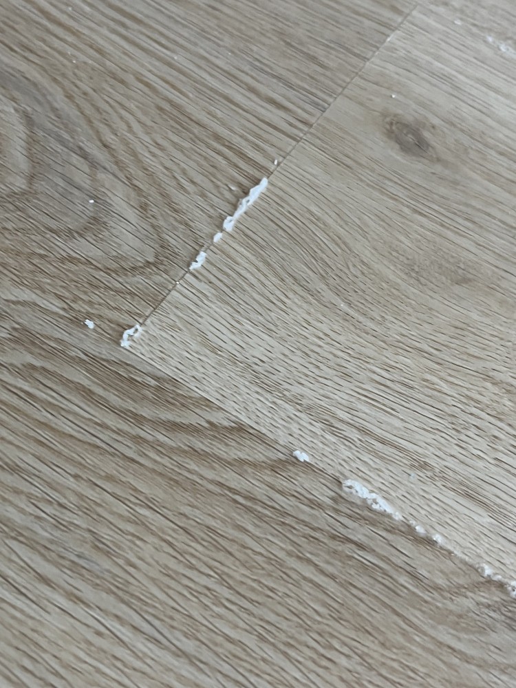 제가 기존 주택을 리모델링하면서 바닥 시공을 다시 장판에서 마루(SPC 돌마루)로 교체를 하고 3개월 정도가 됐습니다. 처음엔 흰 색 소금 알갱이들이 보이길래 그냥 청소하면서 신경을 안썼는데 특정 부분에서만 계속 생기는걸 발견했습니다. (마루 틈에서 약간의 물이 새어나옴 -> 수분이 날라가면 흰색 결정이 생김)