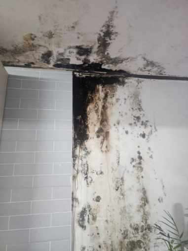 주택 욕실 천장 물 고임, 천장 및 벽 곰팡이