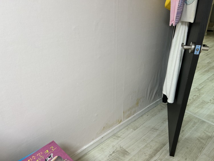 작은방 내벽쪽에 항상 8월만 되면 밑에부분부터 벽지가 젖어들고 젖은부분은 곰팡이가 핍니다