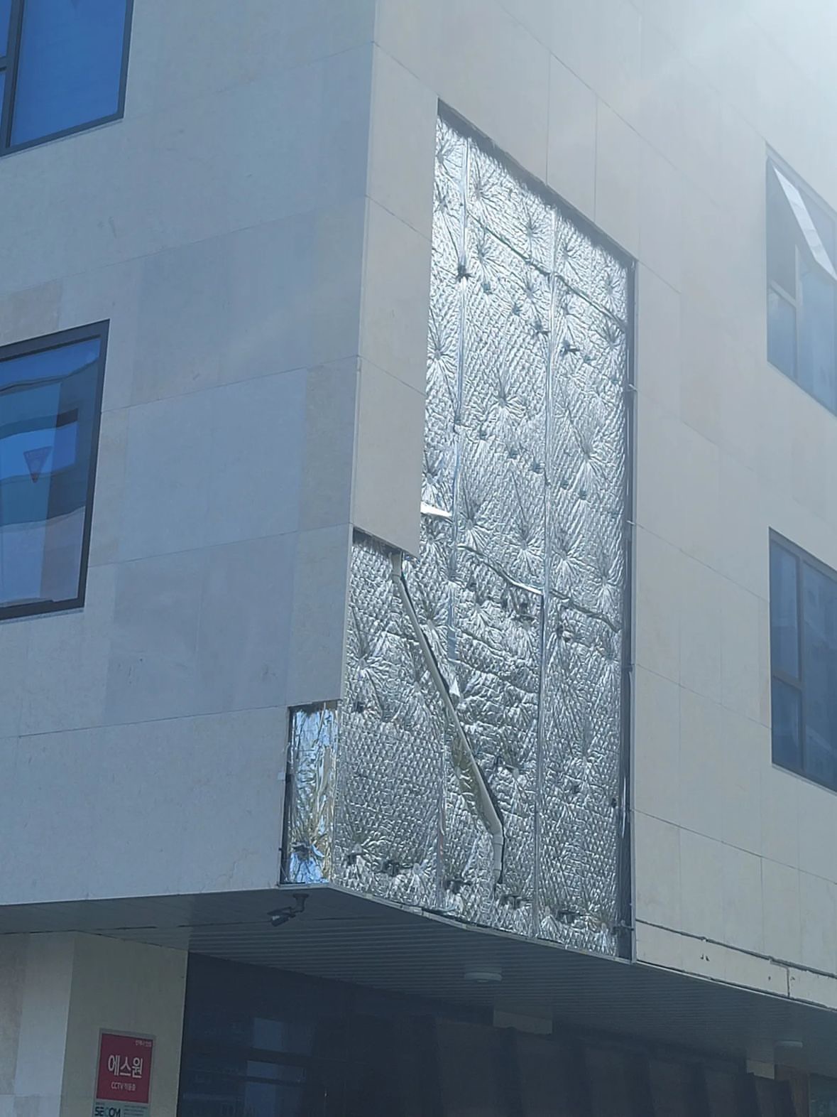 며칠전 밤에 갑자기 외벽 석재가 들뜨면서 쳐저서요.