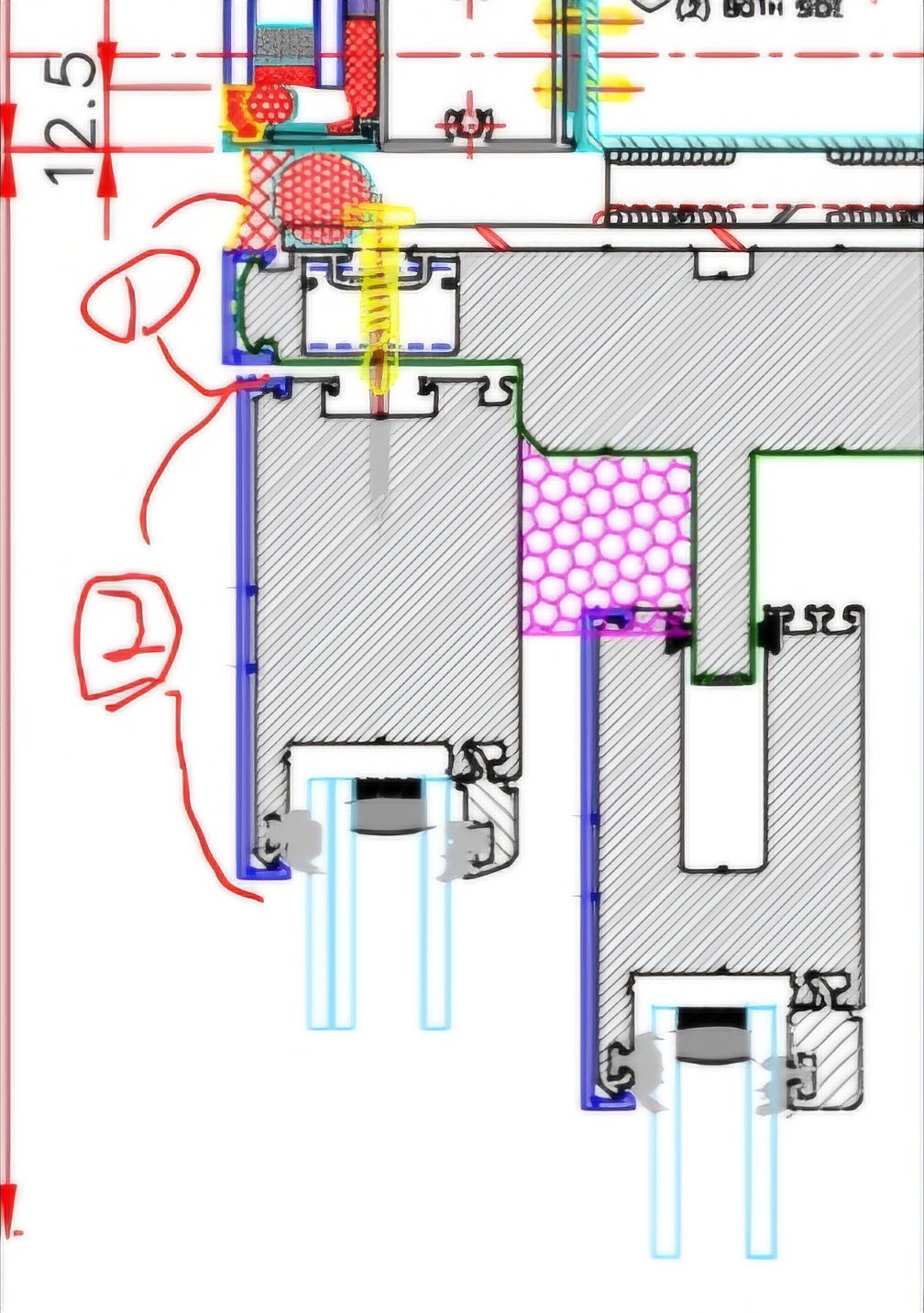 (참고: 본 도면은 290GH모델로, 이슈가 발생한 샷시(287GH)와 알루미늄캡 시공 유/무로 구조는 동일하다고 LX는 주장했습니다.)