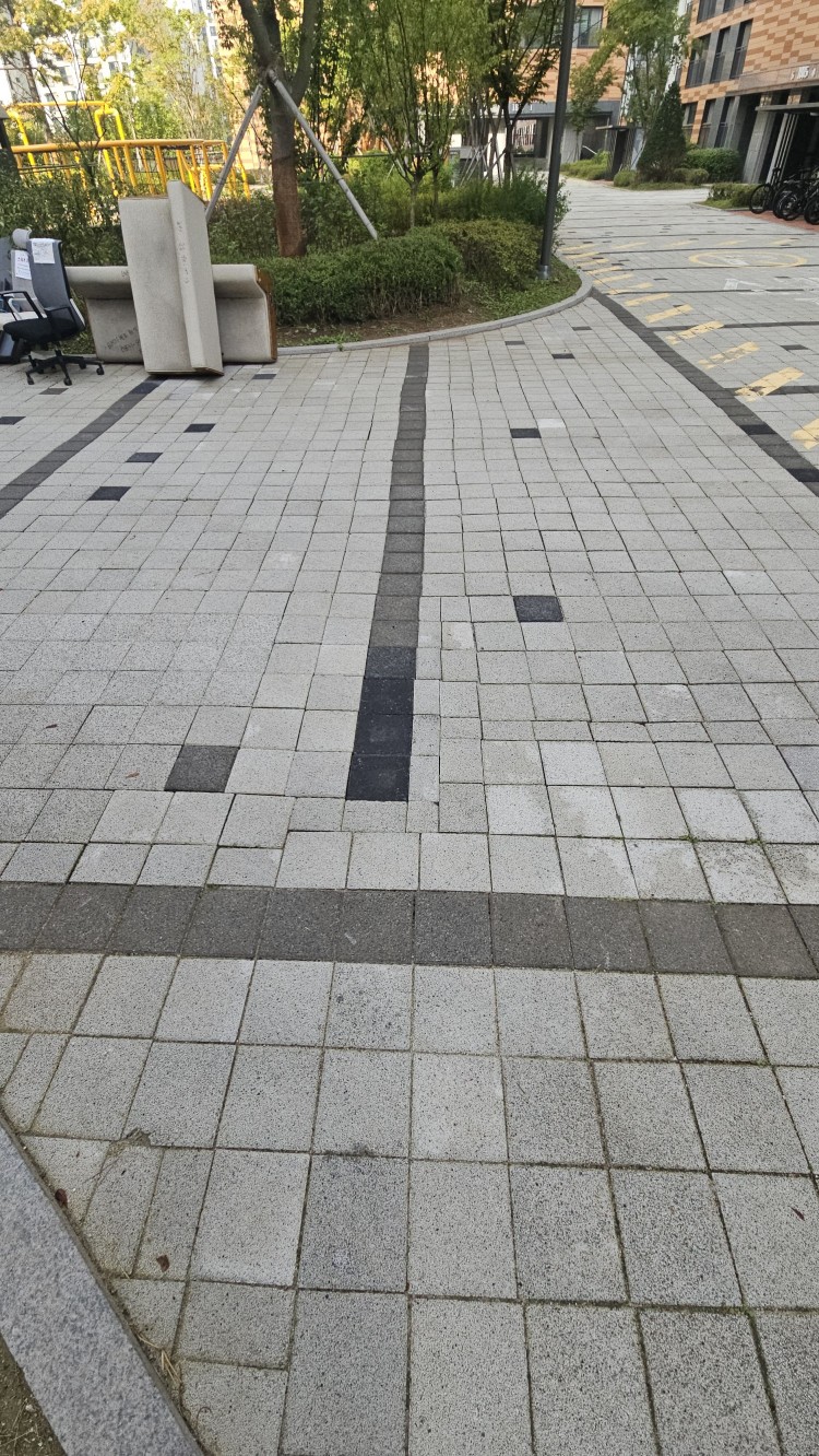 단지내 물고임, 단차, 오염(블록 포설후 조경공정 오랜기간 진행됨) , 시각적하자(교차로 마감, 정물림 패턴 구간 심각하게 줄눈 일치하지않음) 등의 문제가 있었고