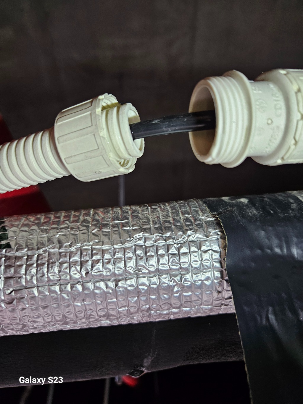 에어컨 실내기와 실외기를 연결하는 통신케이블로 추정되는 전선이 하얀색 CD관에 들어 있는데요.