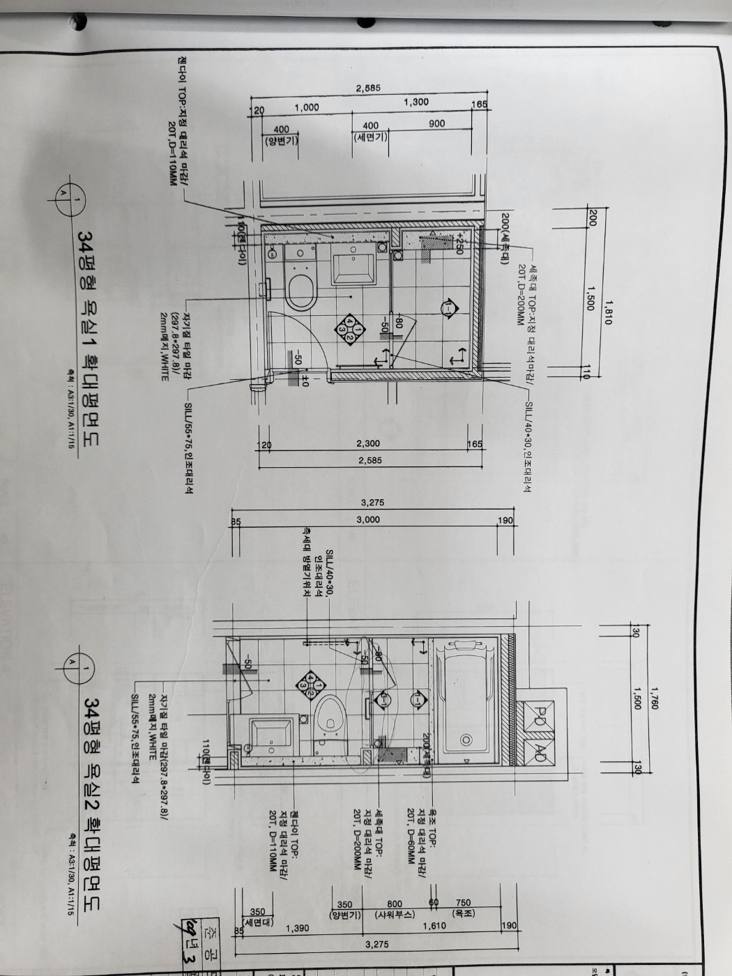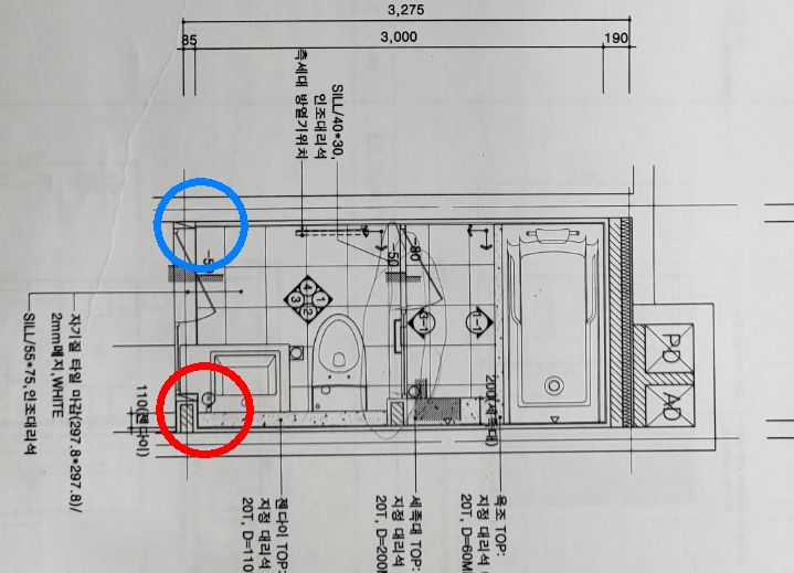 표시해 준 도면은 현관쪽 화장실과 모양이 같아서 그렇습니다.
