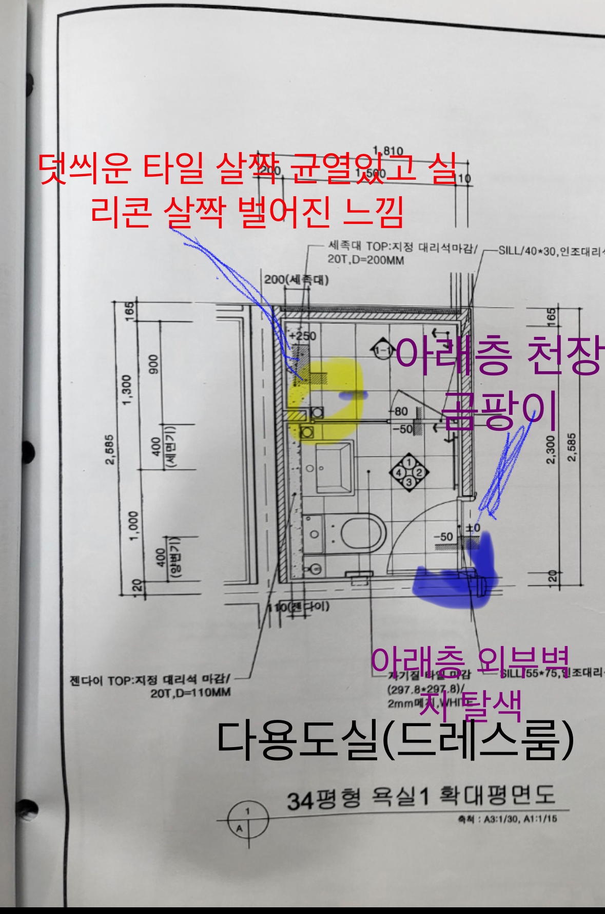 오히려 배수의 문제여야 바닥만 다시 하면 되니 간단하군요?ㅠㅠ 어제 비가왔으니 아랫층 또 한번 내려가봐야하나.. 아무튼 이해가 많이 됐습니다 감사합니다!