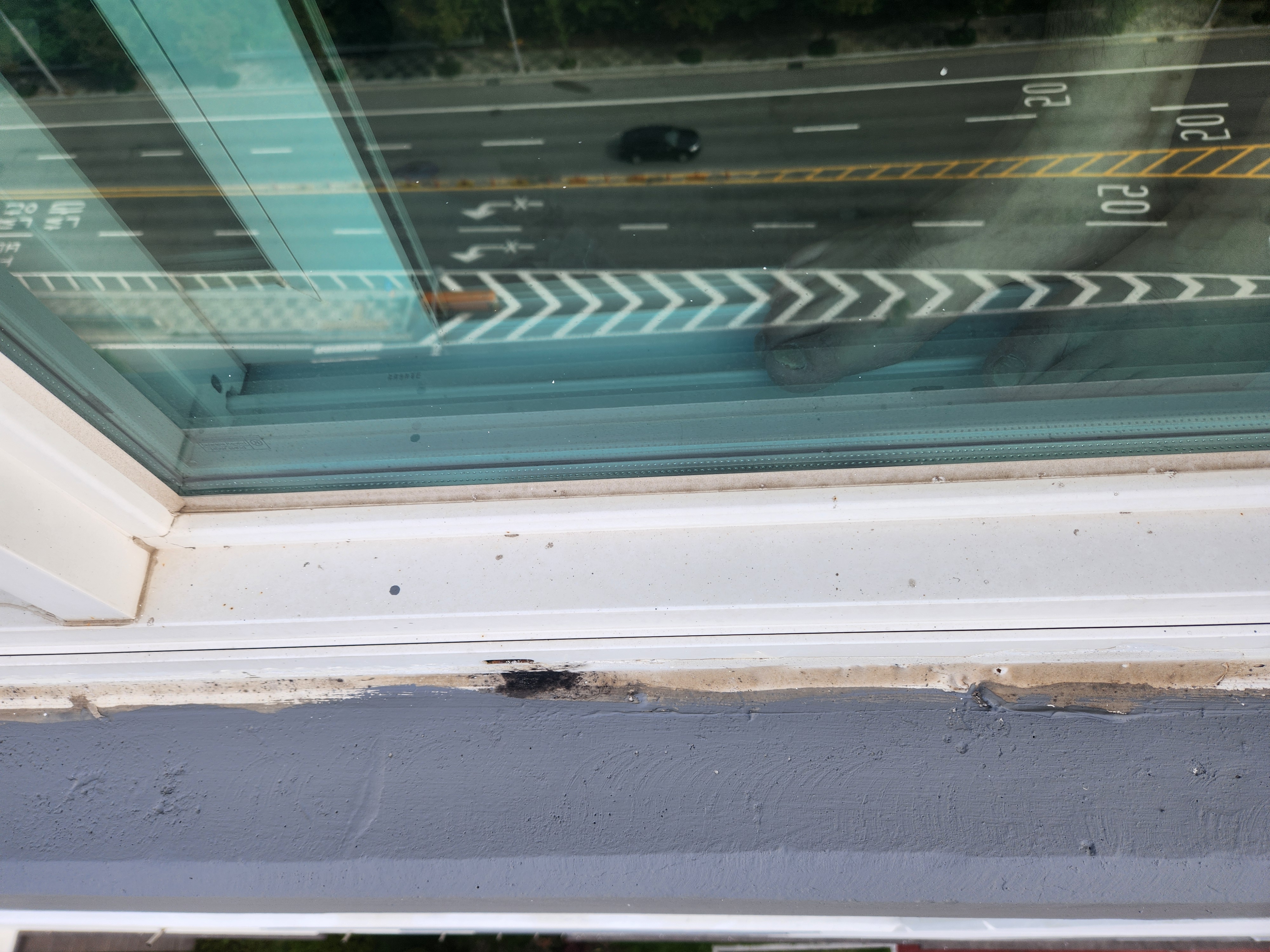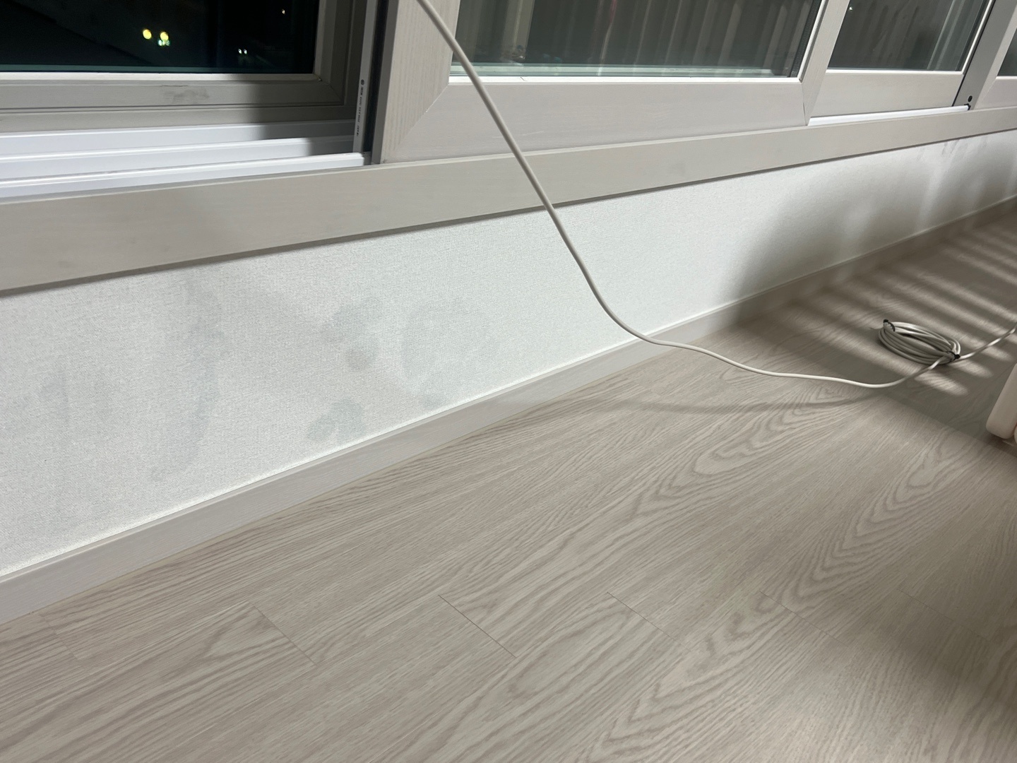 장마철 거실 창틀하부 벽체에 갑자기 곰팡이가 피었습니다.