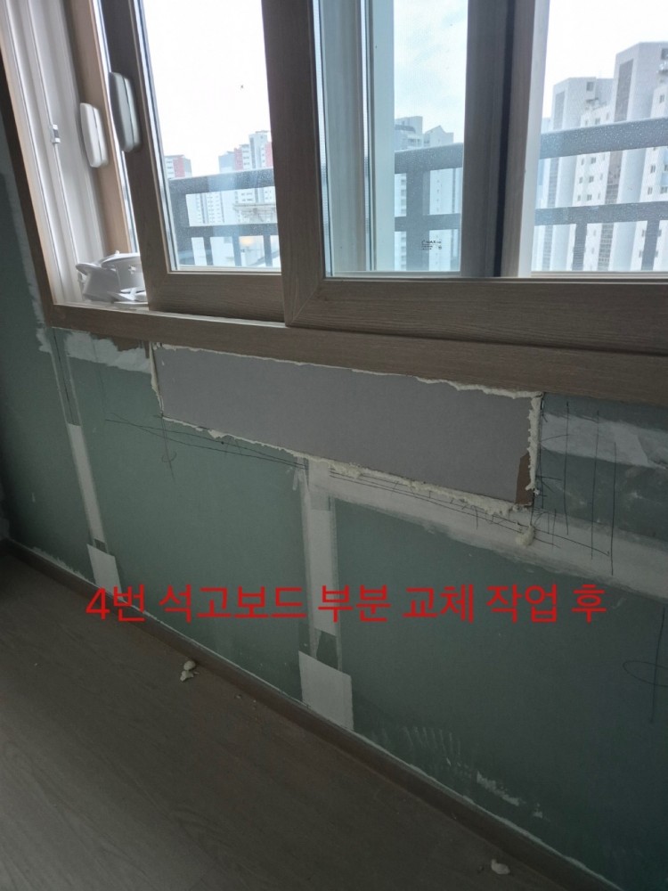 4번 사진은 석고보드 부분 교체 후 사진입니다.
