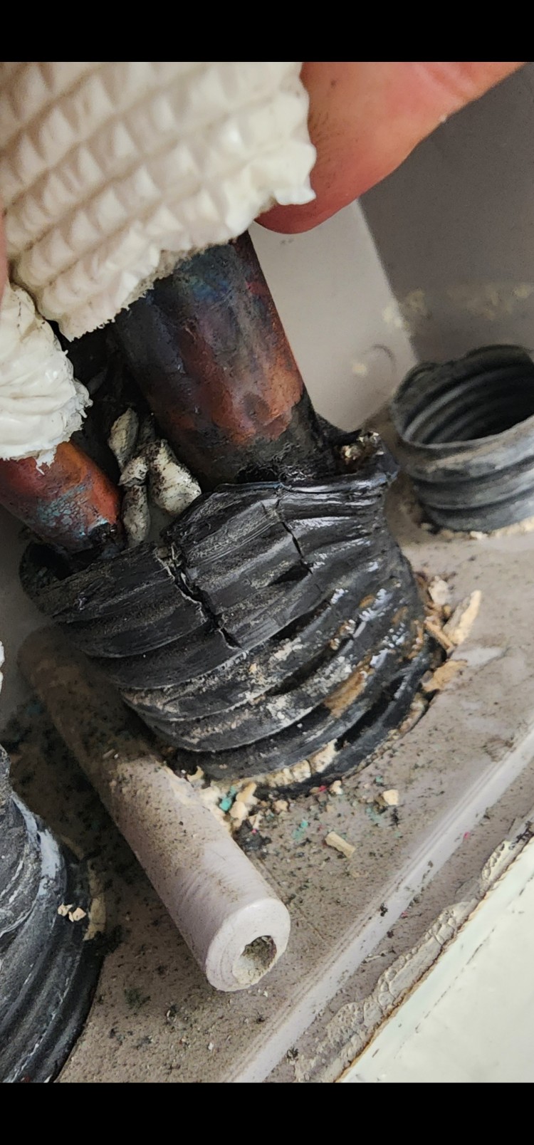 고압/저압관 사이에 단열재로 추정되는 것이 잇는데 만져보면
