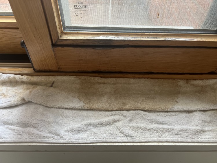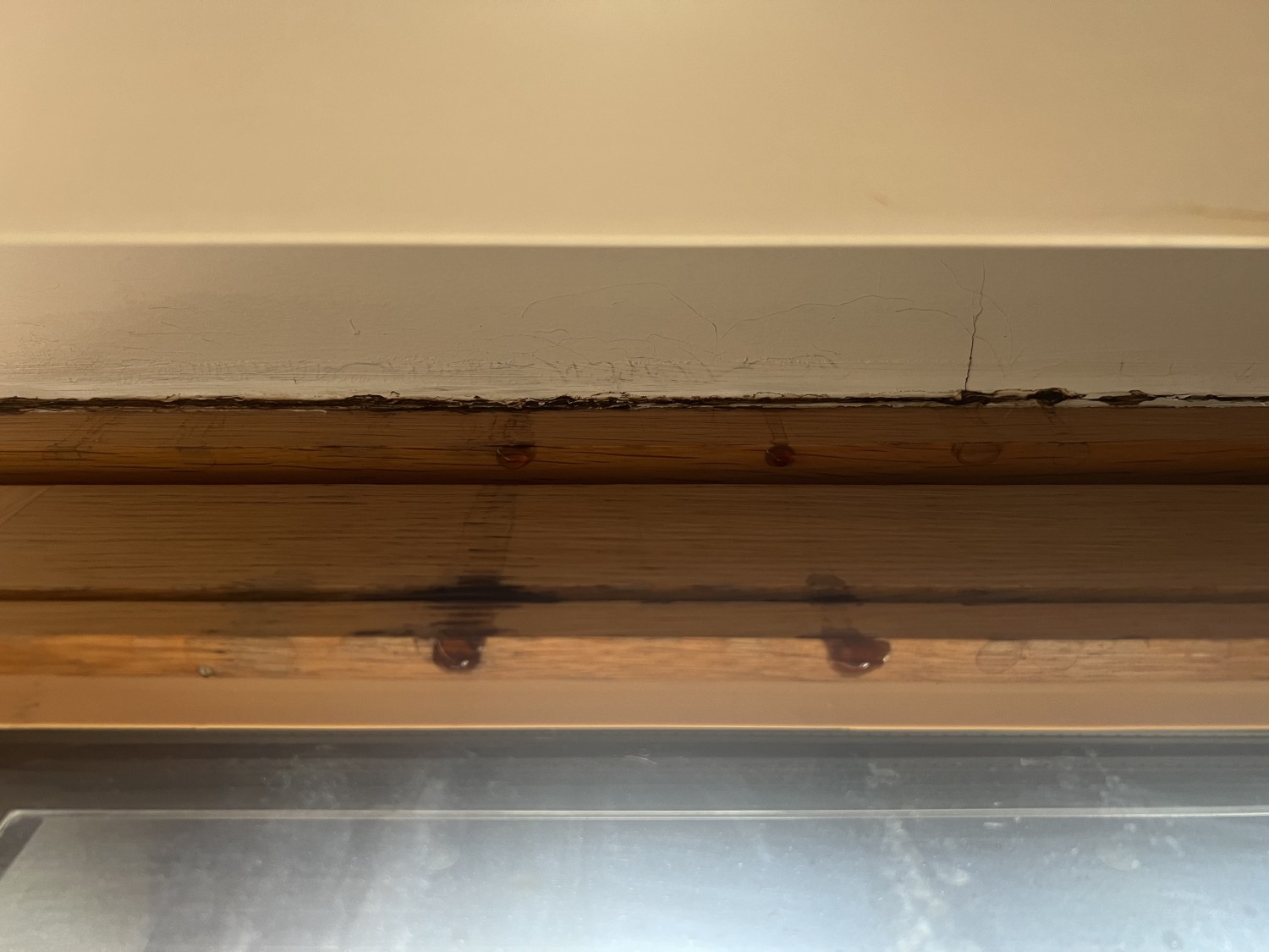 창호주변에 기밀테잎 시공은 없었고, 미장사춤으로만 처리가 됐습니다. 비가 많이 올때면 이렇게 계속 누수가 있어서 내부 목재가 거의 썩고 있는데요, 해결방법이 있을까요?