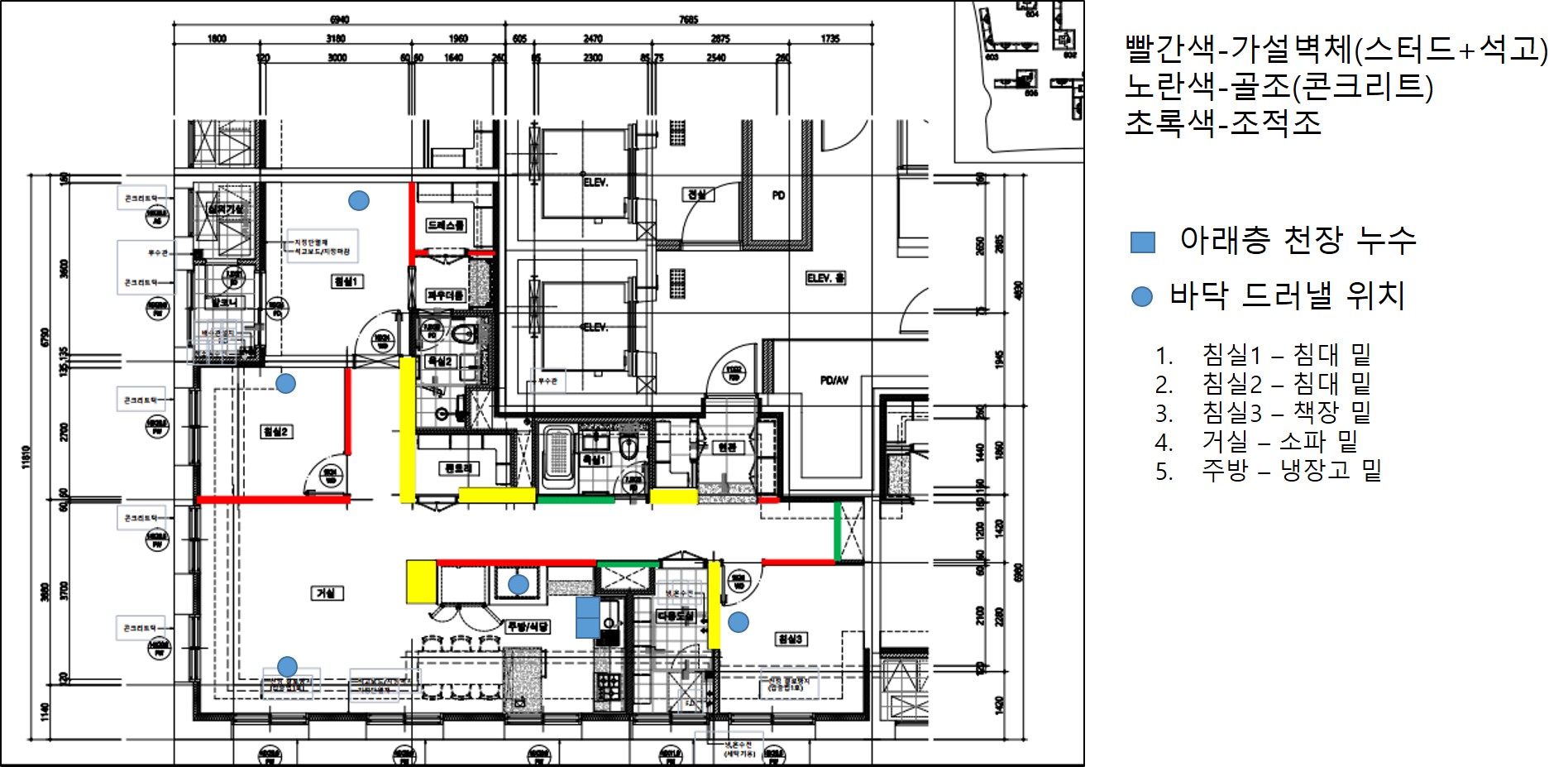 - 완전 건조를 위해서 빨간색으로 표시된 가벽을 모두 드러내고 건조하는 것으로도 충분할까요?