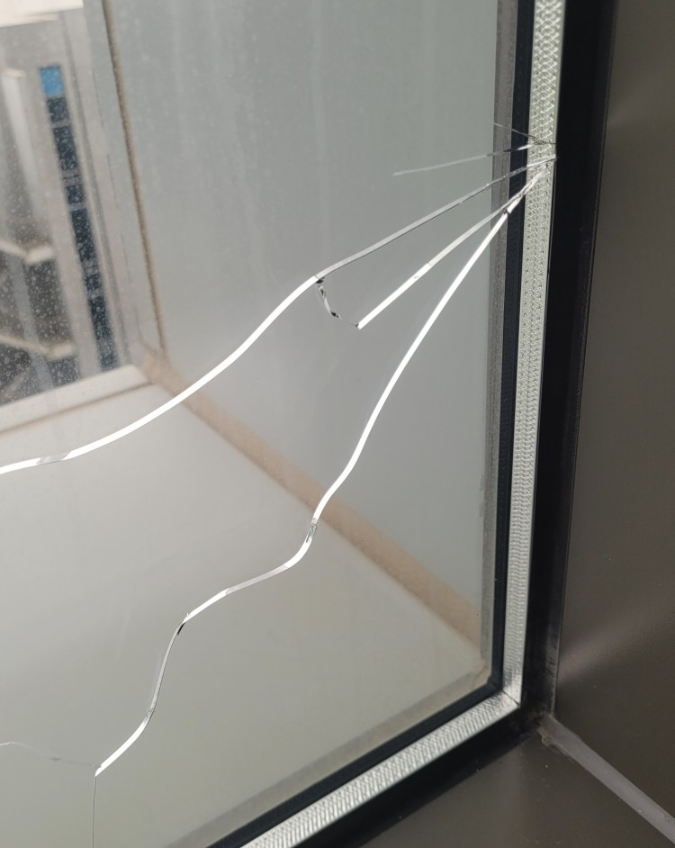 처음에는 태풍 때문에 깨진 줄 알았는데 외부 유리는 멀쩡하고 내부 유리만 금이 갔더라구요ㅜ 검색해보니 비슷한 사진들 대부분 열파손이라고 하던데 마침 복층집이며 고층입니다ㅠㅠㅜ