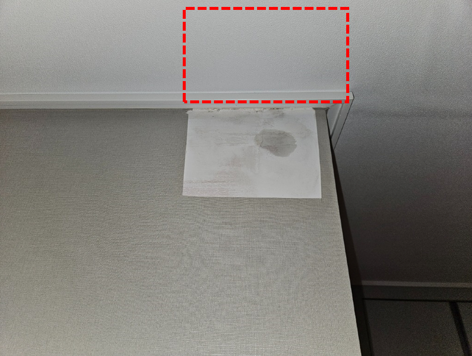 2. 원인을 아직 모르기에, 조치할 것은 없고.. 내키지 않으시겠지만 아래 사진에서 표시한 부분을 절개해서 그 안의 상황을 보시는 것이 좋겠습니다. 그래야 그 물이 천장 구조체를 타고 떨어진 것인지, 그렇다면 어느 경로로 떨어진 것인지를 파악할 수 있기 때문입니다.