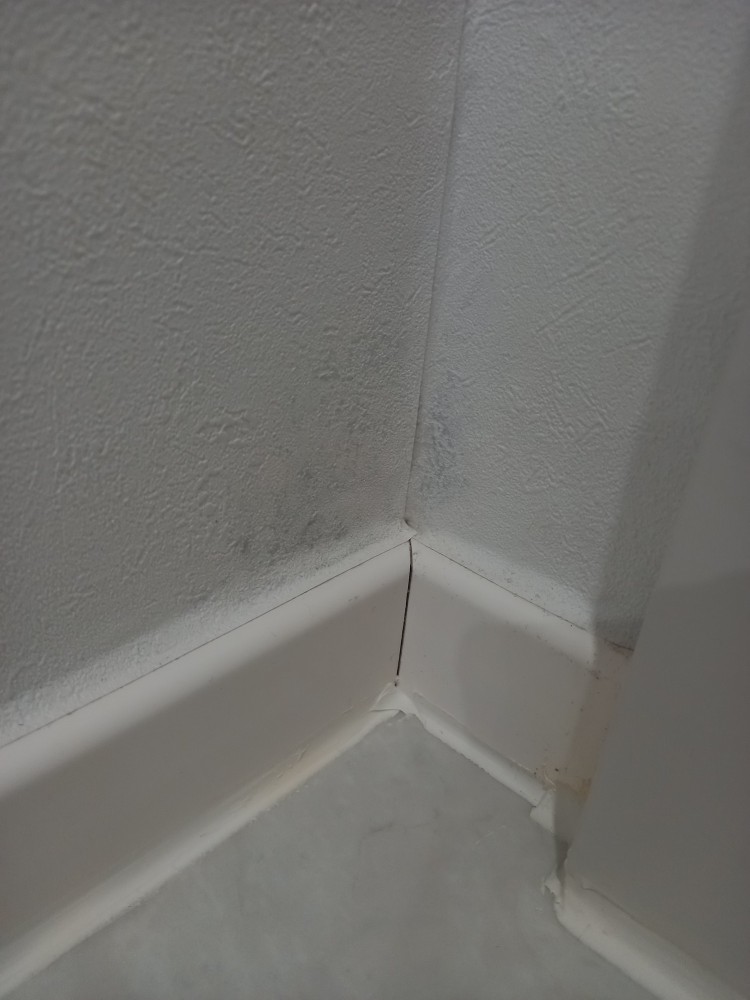 화장실 앞 장판과 벽지 누수로 인한 변색인지 곰팡이인지 확인부탁드려요