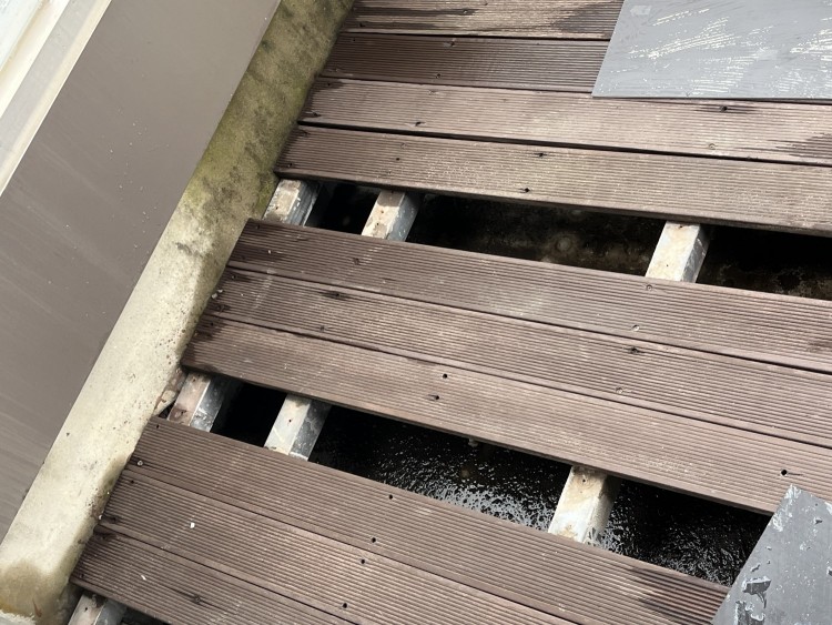 저희 집 구조는 외부에 테라스가 있고 비가 오면 나무 데크 아래에 빗물이 조금씩 고이는 구조입니다.