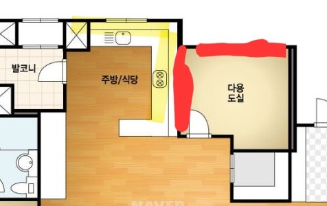 주방 싱크대교체하면서 노란색부분은 단열재까지는 뜯지 못하고 석고보드만 전부교체했는데